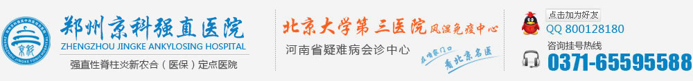 中晚期的病变以脊柱受损为主,病情的发展有上行型和下行型两种,且同时伴有骶髂关节炎。90%的 病人由骶髂关节开始,沿腰椎,胸椎,颈椎上行发展,检查发现骶髂关节有压痛和叩击痛,“4”字试验阳性。疲劳、乏力、气短、面色淡白、消瘦、拍骨盆正位片 表现位骶髂关节部骨缘模糊不清,尤其发生在髂骨一侧,并伴有关节两侧的斑点状硬化骨形成。腰椎—腰脊背疼,腰部前屈、后挺、双侧运动受限,腰椎正常的生理 弯曲度消失或平直,严重者可造成腰肌萎缩。胸椎—背、前胸、双胁疼痛,胸扩受限,呼吸痛,憋气,易造成驼背畸形。颈椎—颈椎、上肢、头部疼痛,颈部强直, 上下左右转动受限,不能回头,不能平视。........【咨询详情】